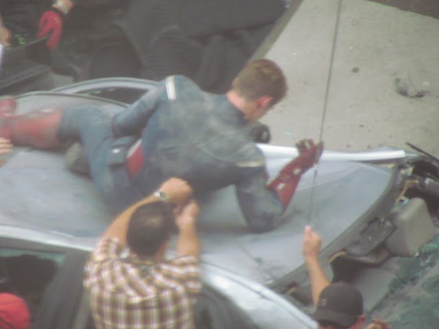 Here’s some set video from current filming in Cleveland. It happens kind of fast, but there’s a good shot here of Chris Evans’ (Captain America) stunt double being tossed out a window. The reaction from the crowd is worth the price of admission:
