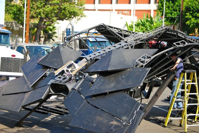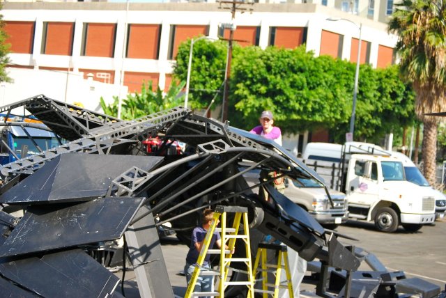 And here’s a few set videos from Los Angeles of The Batwing swooping over the city.