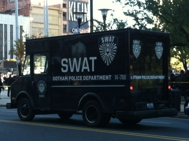 Here’s yet another photo from the Newark, N.J. set of The Dark Knight Rises. You have to love Twitter.