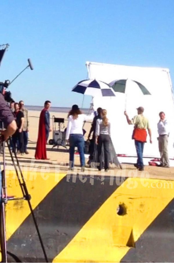Here’s a fresh look at director Zack Snyder’s reboot of the Superman movie franchise. According to Cosmic Book News, it was shot in the desert near Edwards Air Force Base in California. Henry Cavil, Amy Adams and Michael Shannon star.